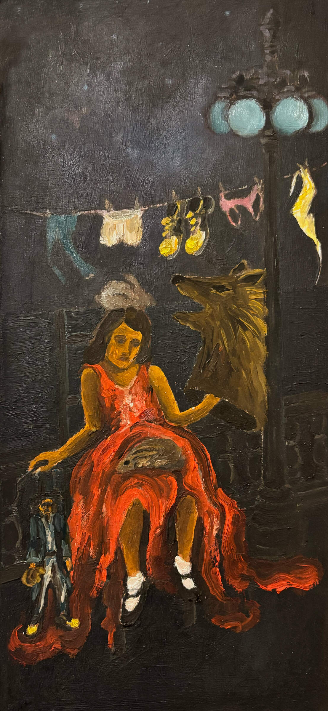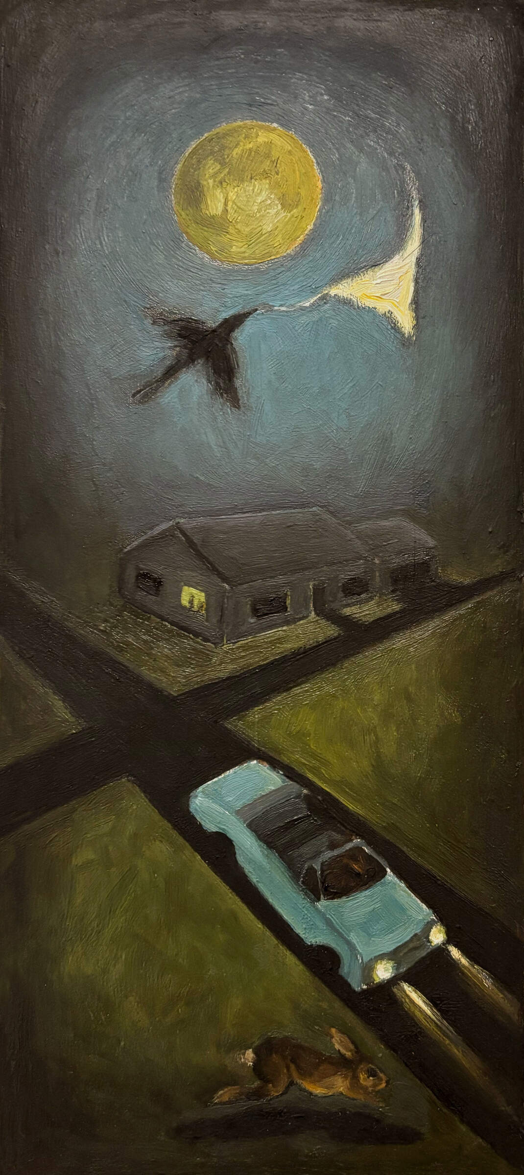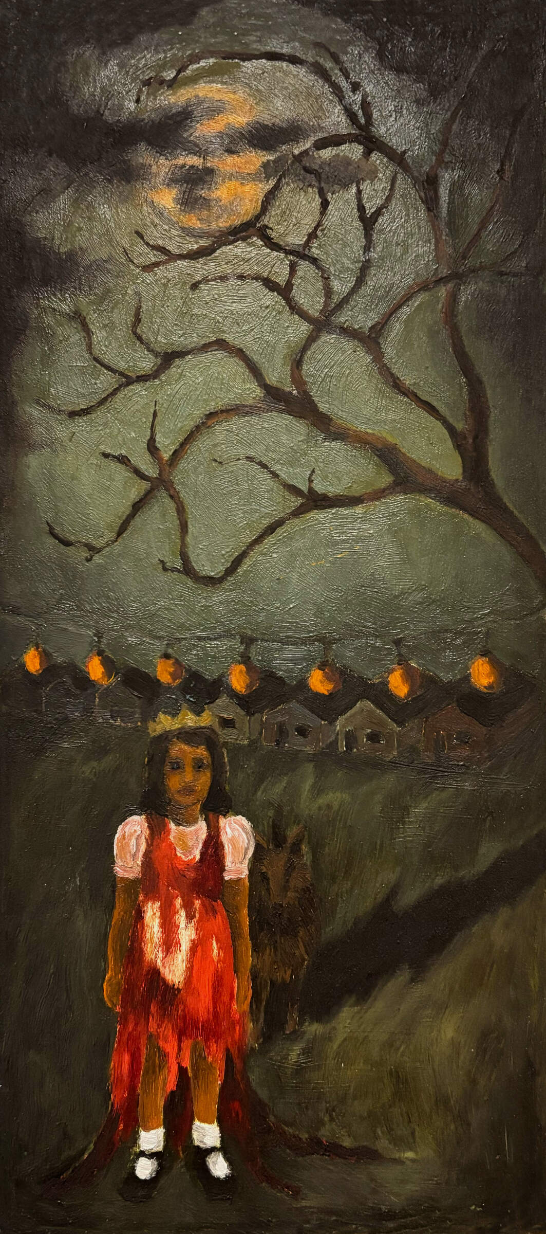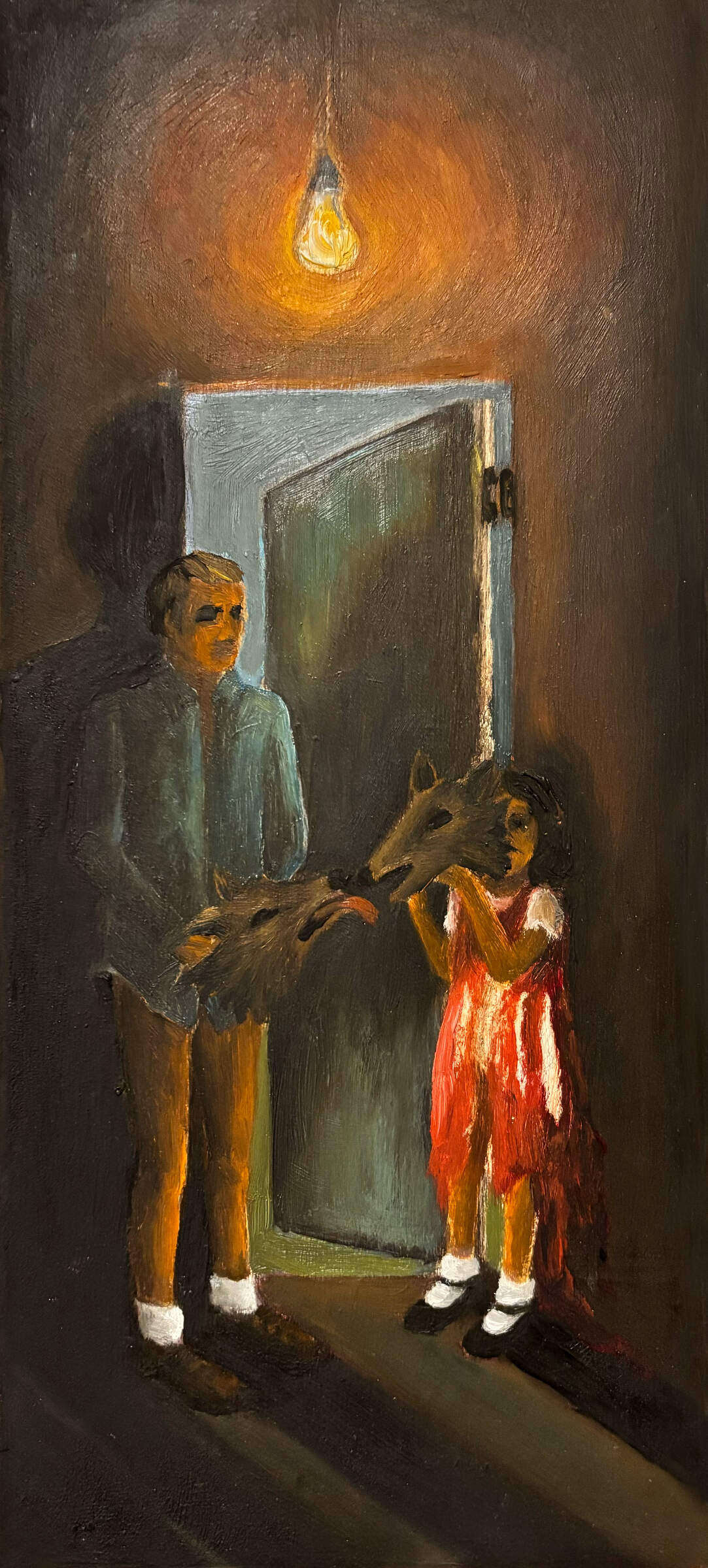 Vivid memories of difficult life experiences are explored in these narrative oil paintings on metal plates.
