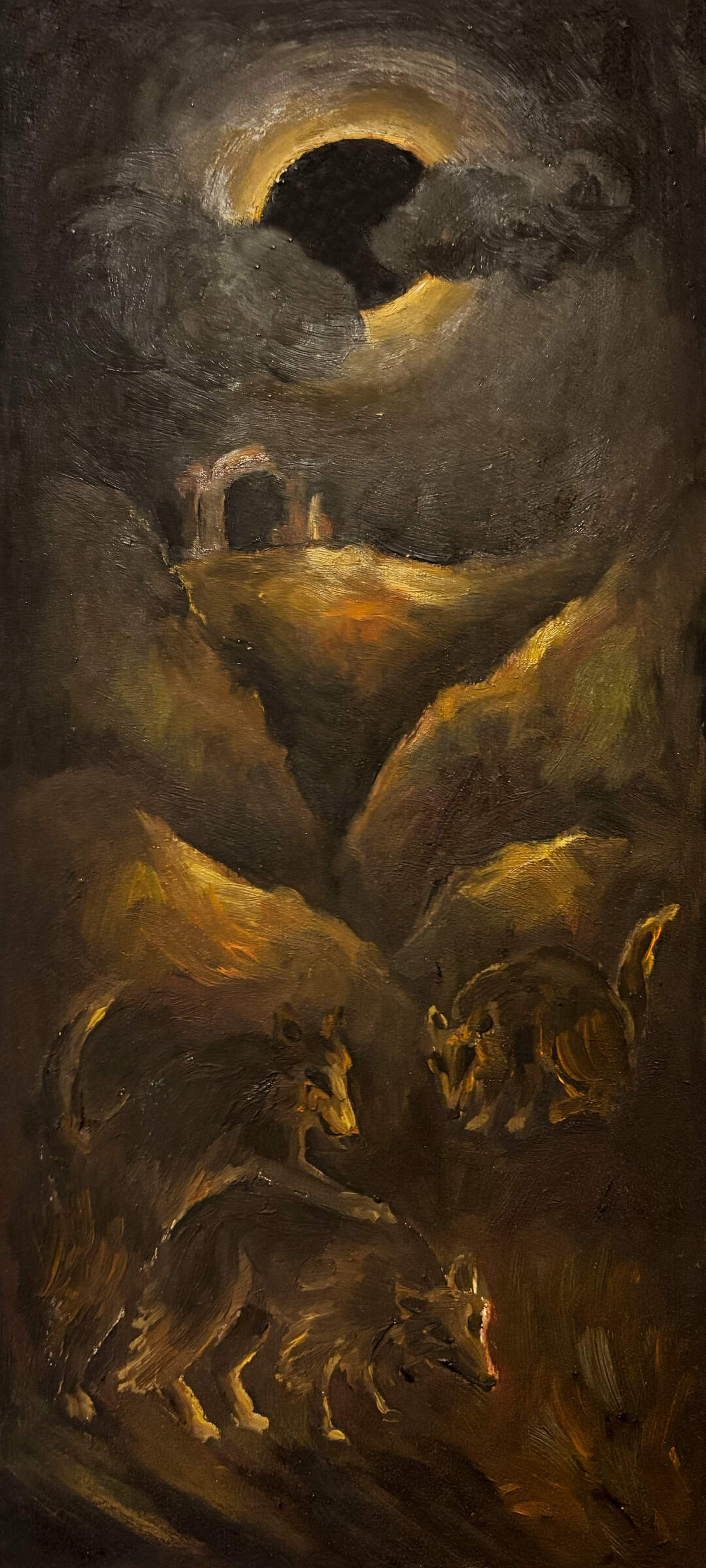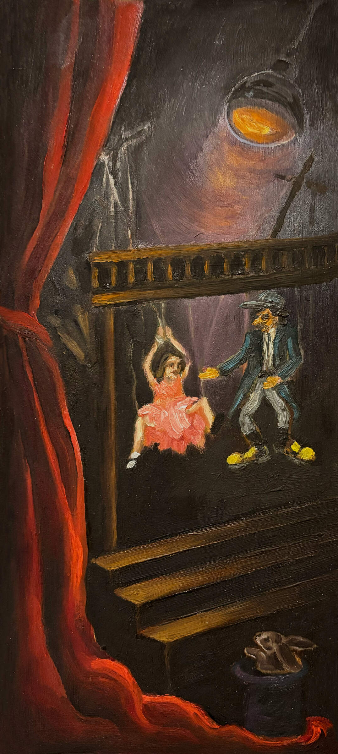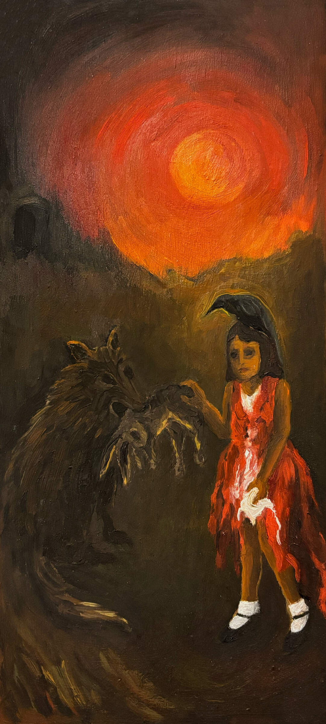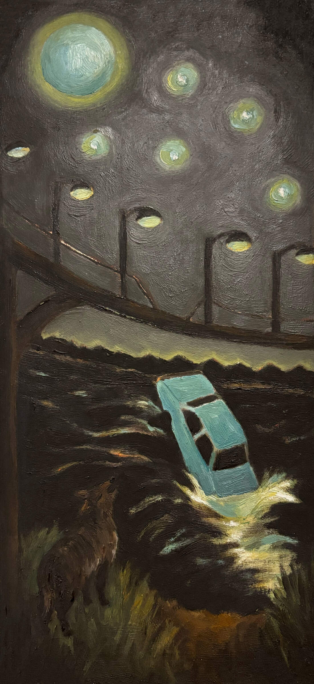 Vivid memories of difficult life experiences are explored in these narrative oil paintings on metal plates.