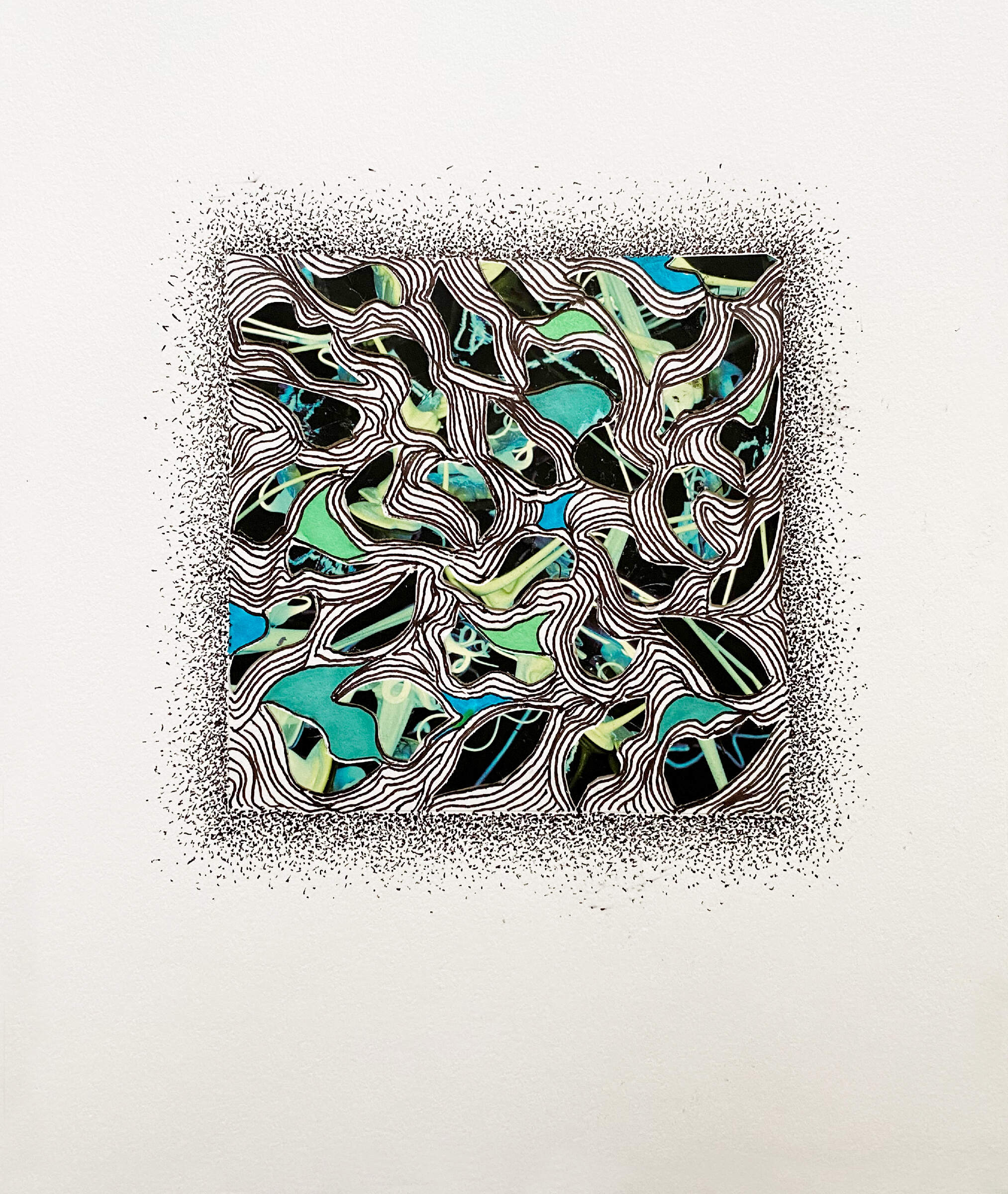 Selected mixed media images from 60 page Fabriano sketchbook inspired by forms and phenomena found in nature.